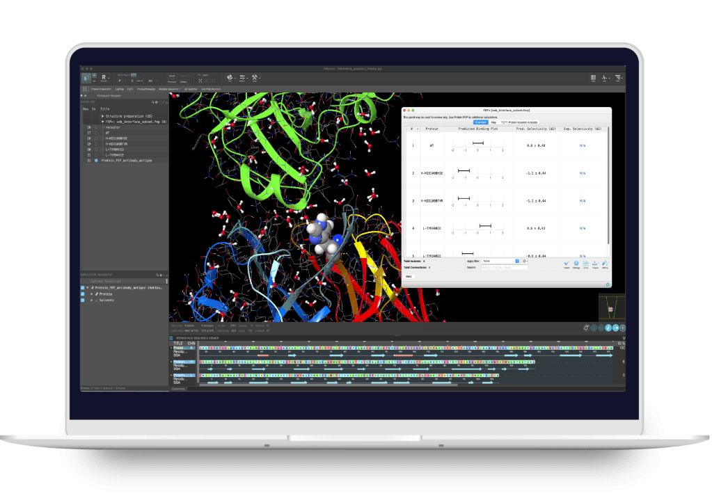 - Refine antibody candidate selection using Protein Mutation FEP+ with an accuracy that reproduces experimentally determined relative free energies to within ~1 kcal/mol