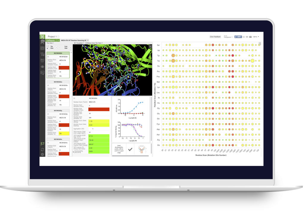 - Perform multi-parameter optimization with easily amenable computational workflows e.g. simultaneously optimize for stability, affinity, cross-reactivity, aggregation propensity, and post-translational modification risk